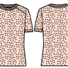 NEW YARN & LOOSER FIT! The short sleeve crewneck with a polka dot motif is knit in a hemp and cotton mix and has a slightly looser fit than our signature peachskin styles. We removed the ribbed hem at the bottom and at the sleeves and kept the waist relaxed. We are offering 2 color combos: light pink with chocolate brown dots, and chocolate brown with tea green dots.