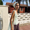 This is not your ordinary tank. This elegant, sleeveless top is a beautiful addition to your summer wardrobe. The color is fresh and cool, the cotton yarn is breezy and the shape is unique.